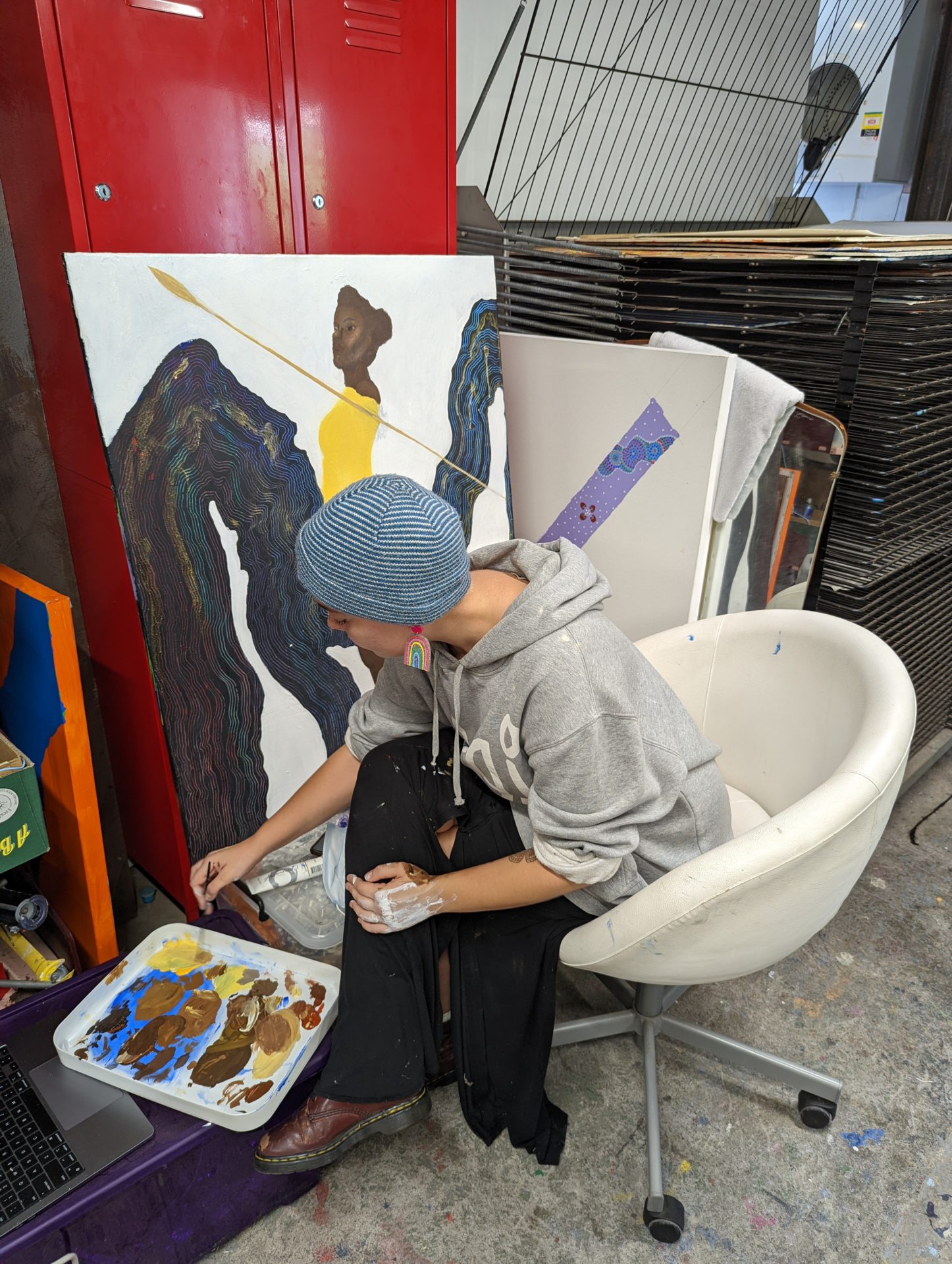 Yaama! I’m Nioka Lowe-Brennan a queer Dunghutti, Birripi, and Gamiliroy woman. I’m a gallery assistant at Boomalli Aboriginal Co-operative, a practicing artist, cultural art student, Actor and Musician.
