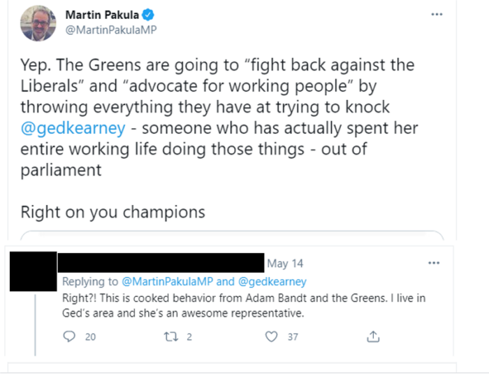 By the time the election was finally over and done with, I had pages and pages of this documented. I was also broken and exhausted. Not a single other Greens lower house candidate dealt with this. Indeed, the only person I saw copping the same was Lidia Thorpe and guess what we have in common? None of these people would consider their actions as racist. The media commentator I witnessed gleefully contributing to the pile-on of me being orchestrated by Labor shitposting pages would also not consider her actions as being fuelled by racism.