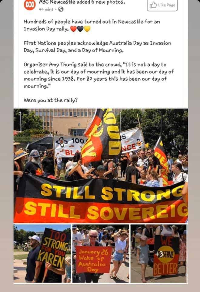 This was Newcastle’s first Invasion Day rally in god knows how long, and it has local and national relevance to the broader debate about Invasion Day, and the racism in Australia that drives so many aspects of what Indigenous protests are about. To remove this post, which should have been an article, instead of deleting and banning the racists, sends all the wrong messages to all the wrong people.