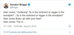 He has, on a number of occasions in recent years, used the n-word on air. The most recent occasion was in August 2018, when he said, “The n—– in the woodpile here, if one can use that expression – and I’m not going to yield to people who tell us that certain words in the language are forbidden – the person who’s playing hard to get is Mathias Cormann.”
