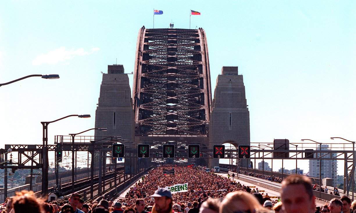 The day after watching the march for reconciliation across Sydney Harbour Bridge, my heart filled with pride and I felt compelled to express my feelings in a poem. The words expressed my pride in seeing blackfellas leading white people across this great landmark, above the rolling waves, to make a statement about reconciliation.